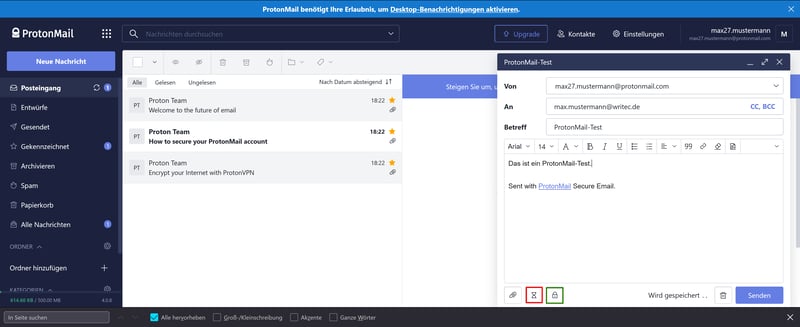 verschlüsselte E-Mails an andere ProtonMail-Nutzer schicken