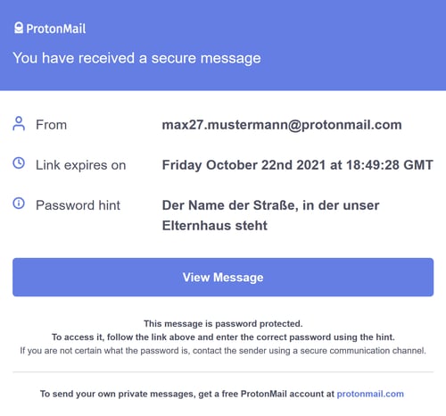 So sieht die Nachricht aus, die Empfänger ohne ProtonMail-Konto erhalten.