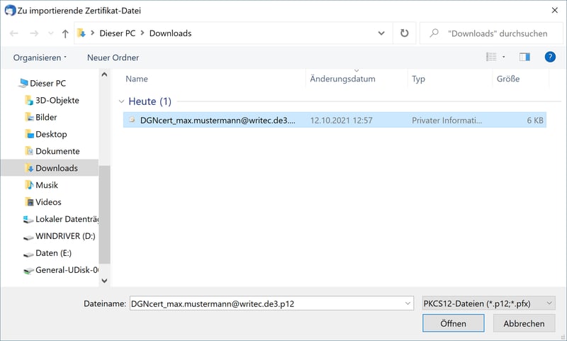 Wählen Sie die entsprechende Zertifikatsdatei aus.