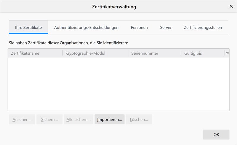 In der Zertifikatsverwaltung können Sie Zertifikate importieren.