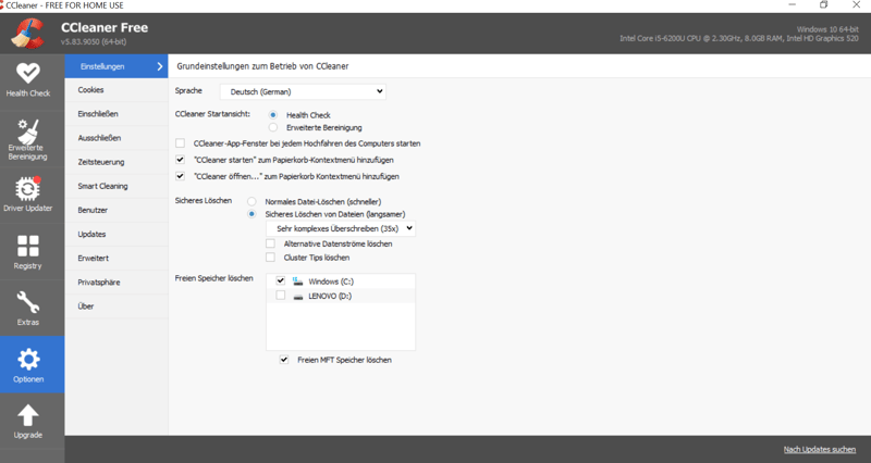 Wenn Sie vor dem Löschvorgang die Option „sicheres Löschen“ auswählen, ist das Bereinigen mit dem CCLeaner sicher und geht einfach von der Hand.