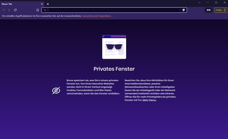 Brave | „Einstellungen“ (oben rechts) -> „Neues Inkognito-Fenster“ | Strg + Shift + N |