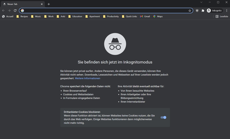 Einige Modi ermöglichen Ihnen zudem, den Gebrauch von Cookies direkt zu unterbinden. Das eignet sich jedoch nicht für den Besuch jeder Webseite, da einige Funktionen eingeschränkt werden können. Möchten Sie etwa eine Webseite aufsuchen, auf der Sie sich in ein Benutzerkonto einloggen wollen, ist dies häufig nur möglich, wenn Cookies erlaubt werden.