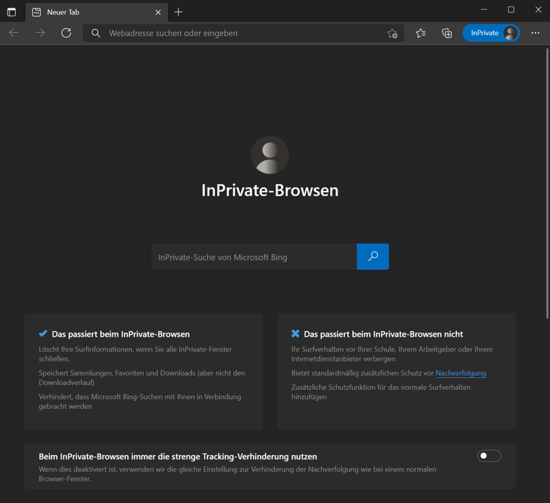 Jeder gängige Browser hat einen Inkognito-Modus, auch wenn er nicht überall so heißt. Mozilla Firefox spricht beispielsweise von „privaten Fenstern“, Microsoft Edge von „inPrivate-Fenstern“.