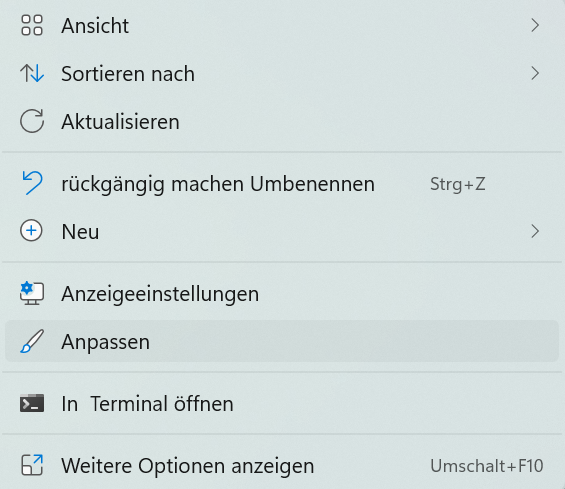 Schritt 1: Klicken Sie mit der rechten Maustaste auf eine freie Fläche auf dem Desktop und wählen Sie den Menüpunkt Anpassen.