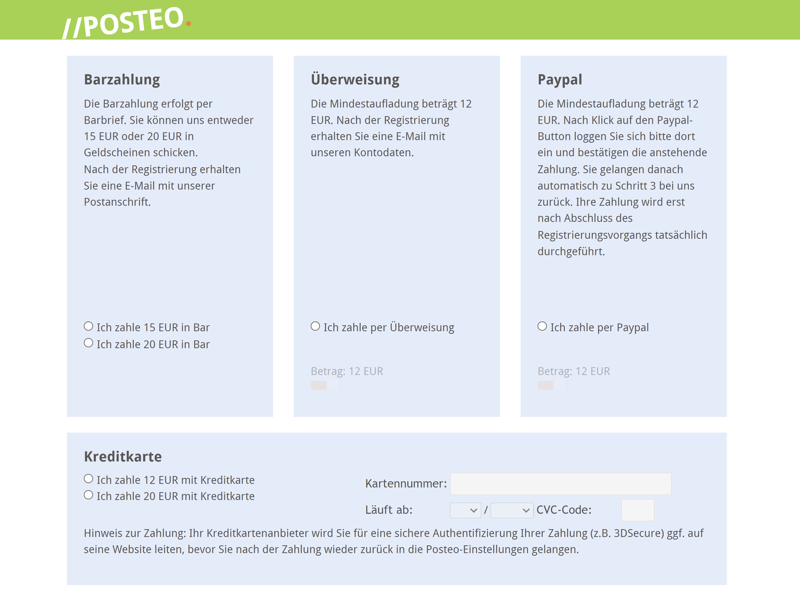 Auch bezahlen können Sie bei Posteo anonym: Sie laden Ihr Postfach mit Guthaben auf, von dem jeden Monat die Kosten für Ihre Leistungen abgebucht werden.
