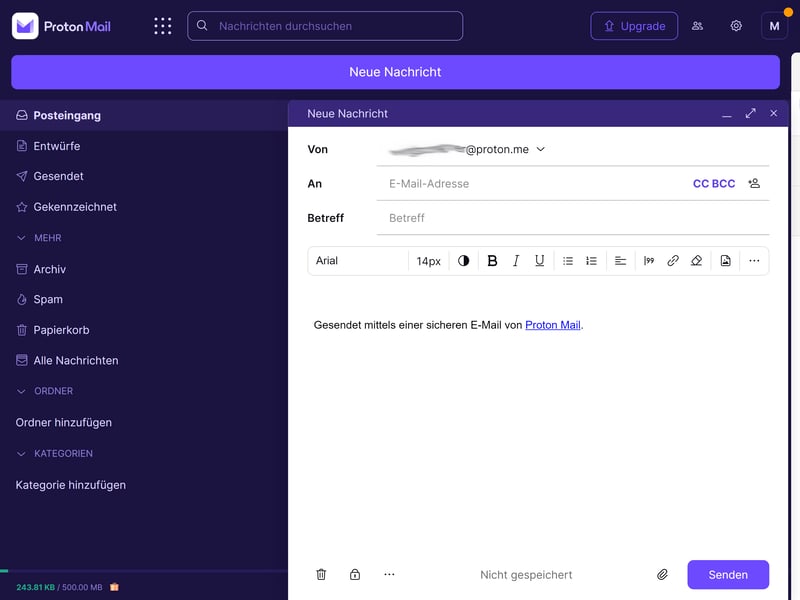 Wenn Sie besonderen Wert auf die Sicherheit und Privatsphäre Ihrer E-Mail-Korrespondenzen legen, sollten Sie einen sicheren E-Mail-Anbieter wie Proton Mail, mailbox.org oder Tutanota in Betracht ziehen. Nach dem Zero Access-Prinzip und mit Ende-zu-Ende-Verschlüsselung sorgen diese Dienste dafür, dass nur Sie und Ihre Empfänger auf die Inhalte Ihrer E-Mails zugreifen können.