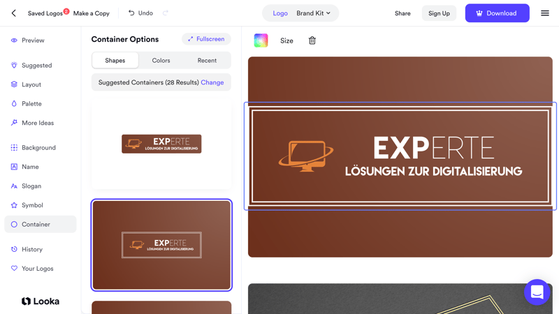 Falls ein zufriedenstellendes Logo-Design dabei ist, können Sie nun darauf klicken und es im Logo-Editor weiter anpassen.