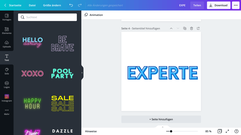 Canva bietet nicht nur klassische Fonts, sondern auch stilisierte Texte für Ihr Logo.