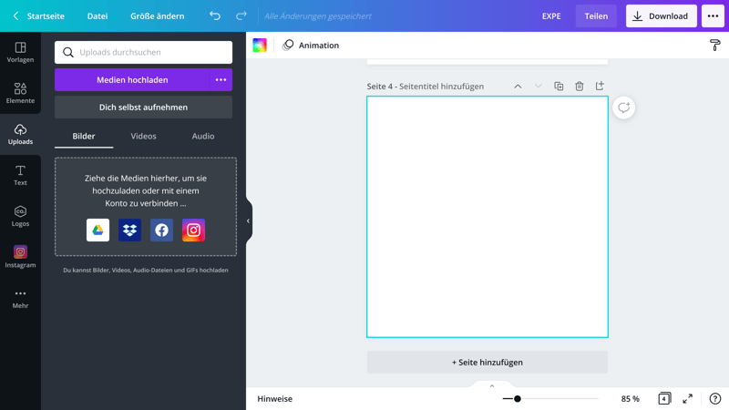 Sie können auch eigene Dateien hochladen und im Canva-Editor verwenden.