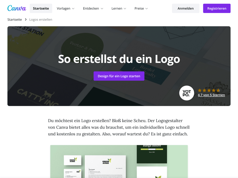 Doch es geht auch einfacher: Mit einem Logo Maker kann man auch ohne Design-Erfahrung in wenigen Minuten ein professionelles Logo erstellen. So auch bei Canva.