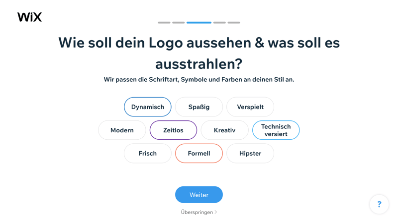 Sie können aus einer Reihe von Attributen auswählen, um den Stil Ihres Logos genauer zu definieren. Darauf werden Elemente wie Schriftart, Symbole oder Farben abgestimmt.