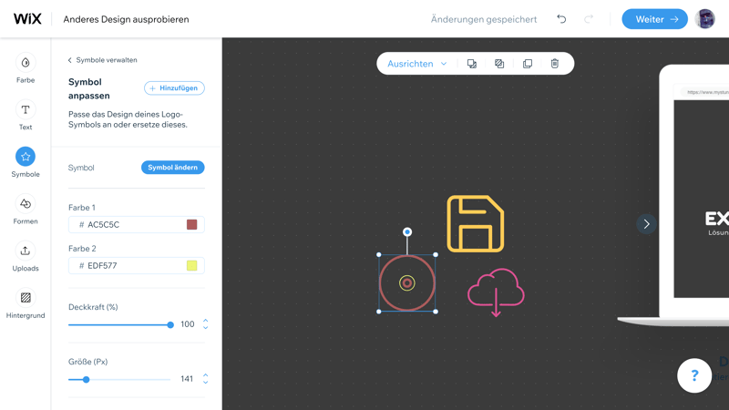 Haben Sie sich für ein Logo entschieden, gelangen Sie in den Logo-Editor. Hier spielt Wix seine Stärken als Drag-and-Drop-Baukasten aus: Sie haben recht viele Möglichkeiten, Ihr Logo weiter anzupassen, und die Bedienung ist gewohnt geschmeidig.