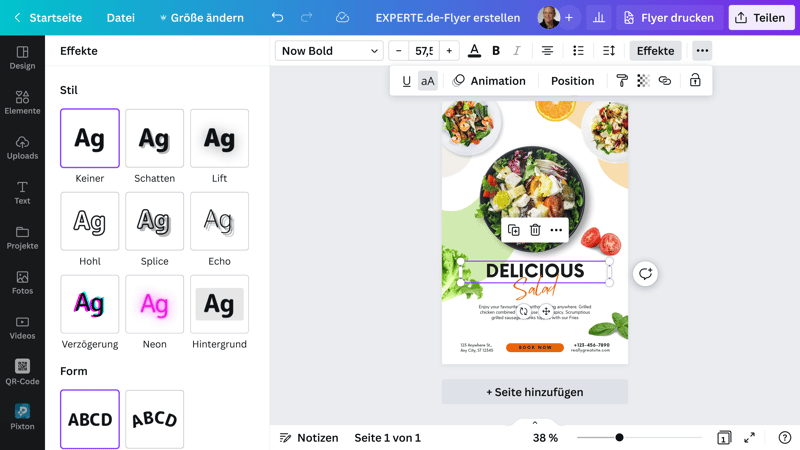 Im mächtigen Canva-Editor können Sie Ihren Flyer nun bearbeiten.
