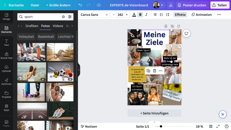 Hinweis: Dieser Ratgeber-Artikel demonstriert am Beispiel von Canva, wie Sie ein Visionboard kreieren können. Bei anderen Online-Designprogrammen können sich Funktionsumfang und Umsetzung unterscheiden.