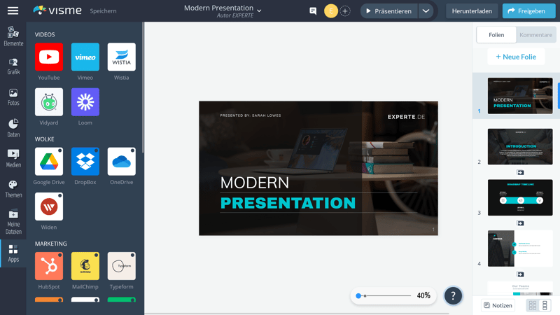 Visme hat Schnittstellen zu verschiedenen Apps, die Ihnen die Arbeit erleichtern.