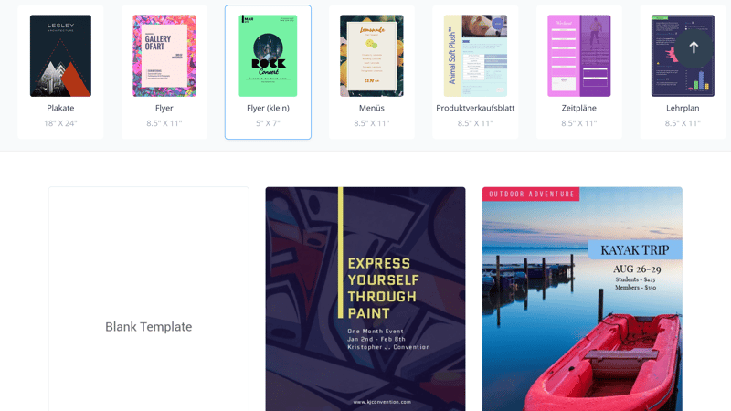 Visme bietet eine beachtliche Auswahl an Layouts, allerdings fehlt es an spezifischen Vorlagen für verschiedene Druckformate und insgesamt an kreativem Charme.