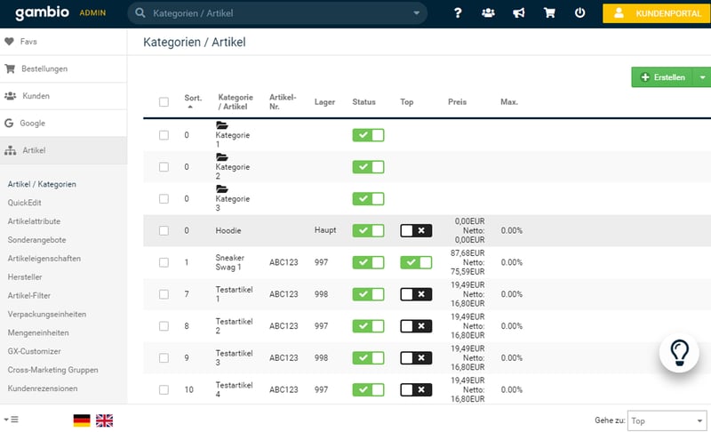 Die Produktverwaltung ist mit Gambio recht unkompliziert.