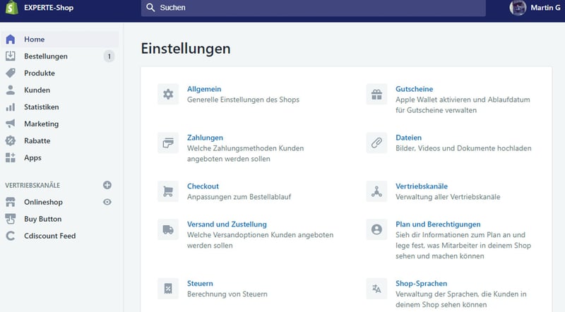 Sobald wir im Dashboard gelandet sind, achten wir darauf, dass wir alle wichtigen Funktionen schnell ausfindig machen können und sich die Navigation logisch erschließt. Generell fanden wir hier zwei verschiedene Ansätze: Die meisten E-Commerce-Plattformen besitzen ein allgemeines Verwaltungs-Dashboard mit verschiedenen Untermenüs, meist in einer Sidebar links angeordnet, zu Bereichen wie dem Produkt-Management, Ihren Bestellungen, Marketing, Statistiken und dem Design Ihres Shops. Beispiele für dieses Bedienkonzept sind Gambio, Shopify oder BigCommerce.