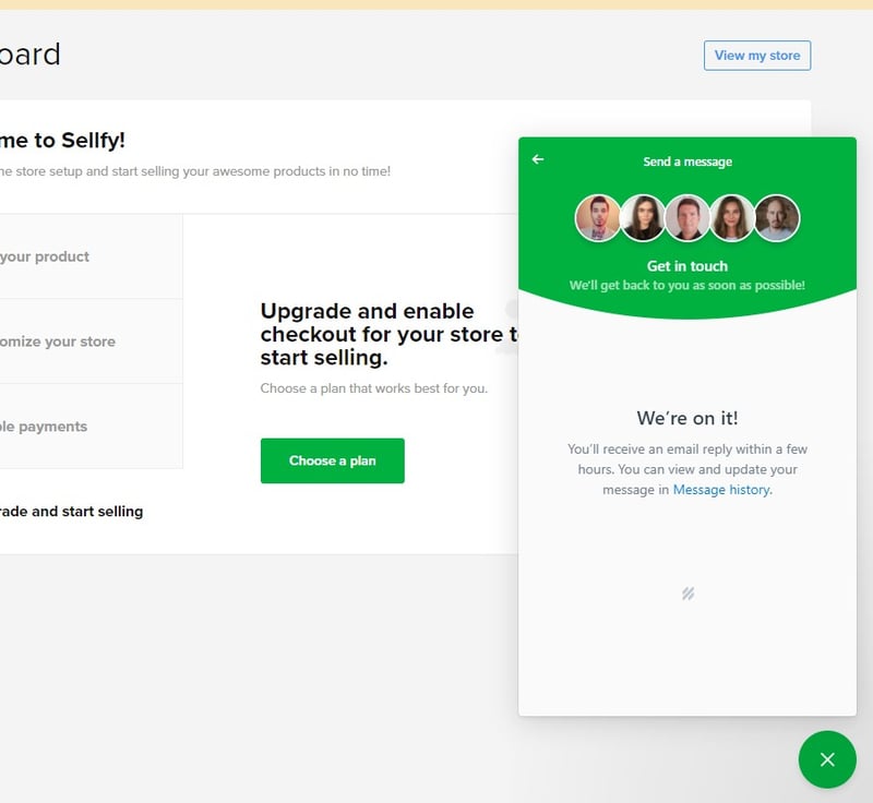 Sie können dem Sellfy-Team direkt aus dem Dashboard eine Nachricht schreiben