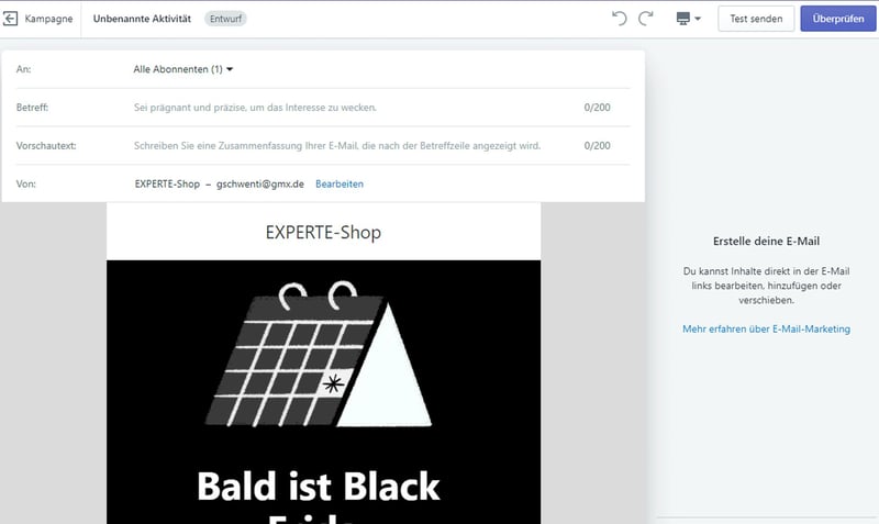 Im Vergleich zu dedizierten E-Mail-Marketing-Tools sind die Funktionen natürlich überschaubar, doch einfache Kampagnen lassen sich auch mit den Mitteln, die Shopify zur Hand gibt, erstellen. Dass E-Mail-Kampagnen inbegriffen sind und nicht zwingend über externe Integrationen geregelt werden müssen, ist zudem im E-Commerce-Bereich noch keine Selbstverständlichkeit.