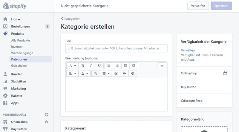 Neben Angaben zur Marke und dem Produkt-Typ können Sie Ihr Produkt auch einer Kategorie hinzufügen, um Ihren Kunden die Suche zu erleichtern. Als Bekleidungsgeschäft können Sie beispielsweise eine Sommerkollektion anlegen, oder als Buchhandel die Empfehlungen Ihrer Mitarbeitenden präsentieren.