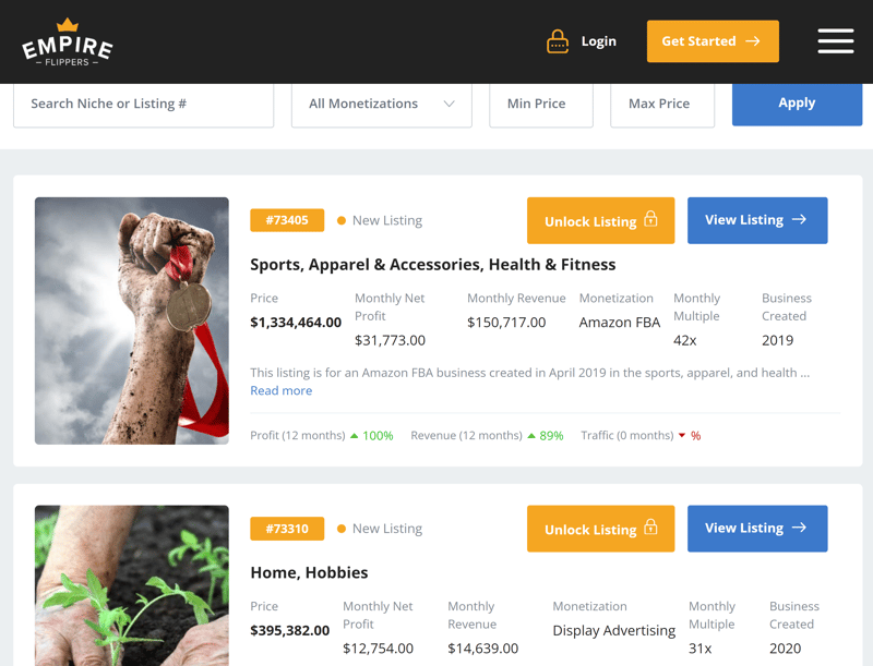 Bei Verkaufsplattformen wie Empire Flippers können Sie auch Shopify-Shops verkaufen.