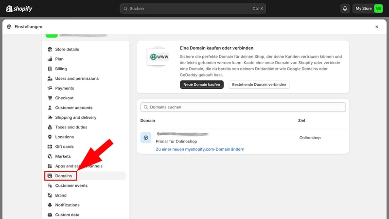 Domain von Shopify: Sie haben eine benutzerdefinierte Domain direkt bei Shopify gekauft? Dann sollten Sie sie an einen anderen Domain-Provider übertragen, um sie fortan dort zu verwalten.