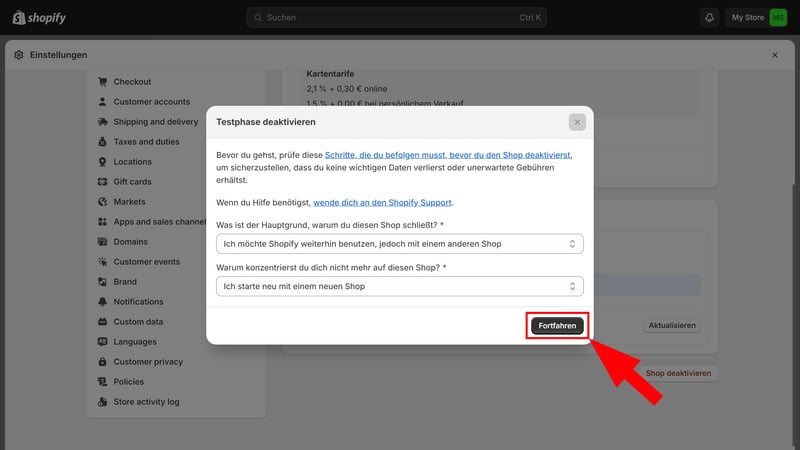 Jetzt müssen Sie Ihren Shop nur noch kündigen.