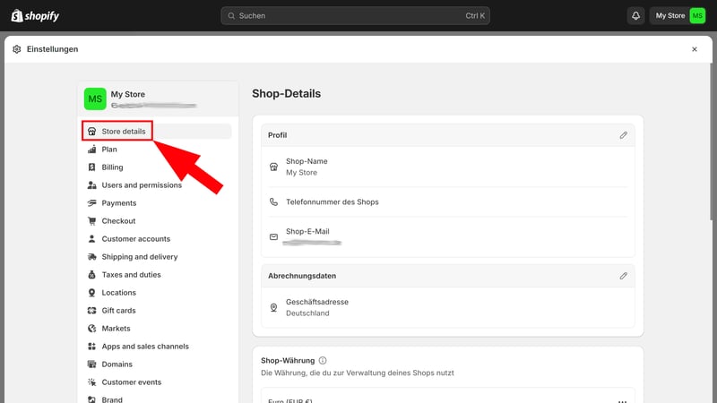 Schritt 1: Aktualisieren Sie in den Shop-Details die Geschäftskontaktinformationen Ihres Shops. Dazu zählen die Geschäftsadresse sowie die E-Mail-Adresse und Telefonnummer Ihres Shops.