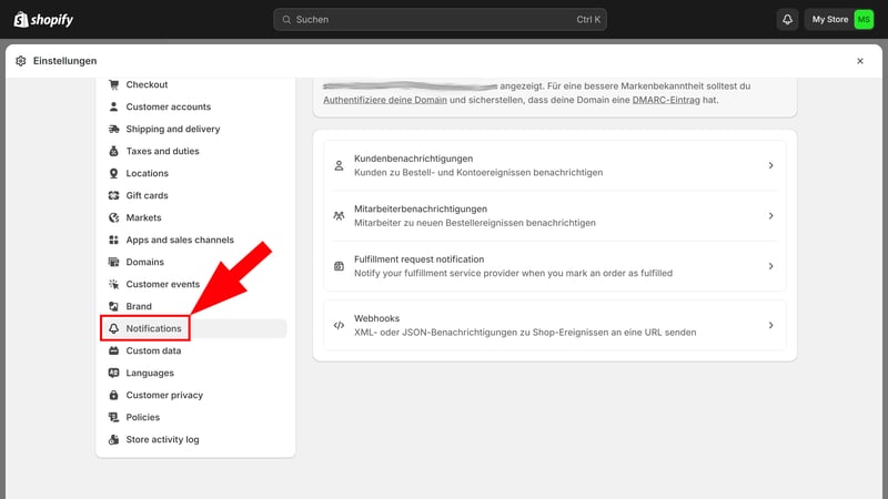Diese und weitere Optionen finden Sie im Domain-Bereich in den Shopify-Einstellungen:
