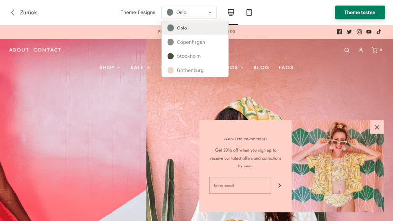 Shopify-Themes sind Designvorlagen für Ihren Shopify-Online-Shop. Die voreingestellten Designs und Layouts bestimmen, wie Ihr Online-Shop optisch aussieht und welche Funktionen integriert sind. Es gibt Themes, die sich für Shops jeder Branche und Größe eignen, aber auch Nischen-Themes für bestimmte Shop-Kategorien.