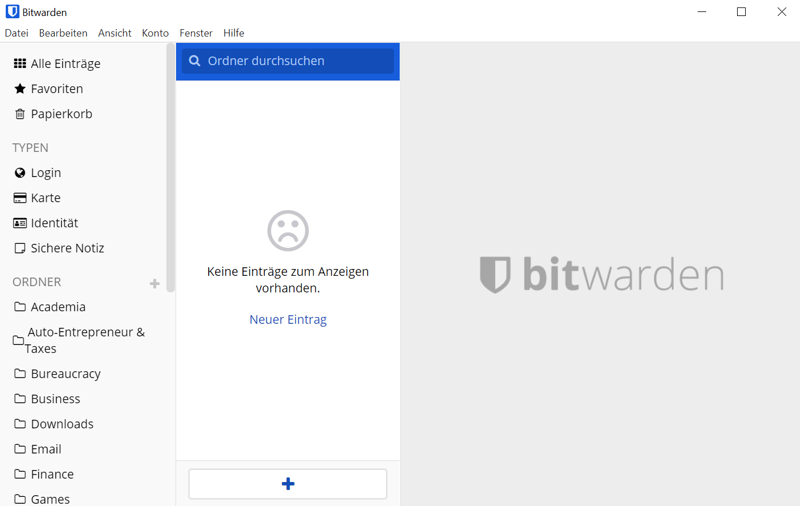 In der Benutzeroberfläche von Bitwarden findet man sich schnell zurecht