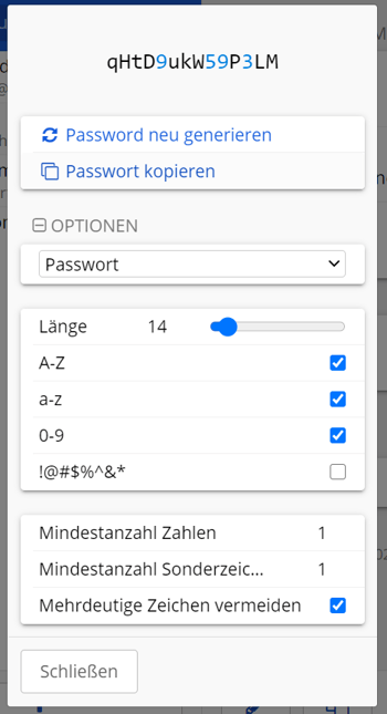 Natürlich bietet die Browser-Erweiterung auch einen Passwort-Generator, sowie die Möglichkeit, Daten und Notizen sicher zu versenden (mehr dazu im nächsten Kapitel).