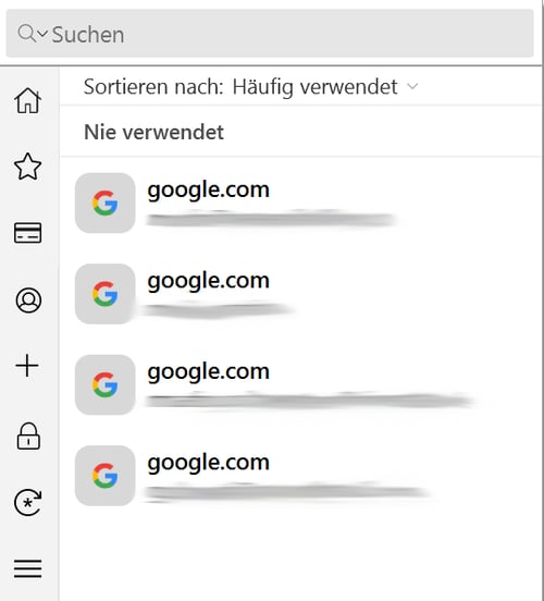 Manche bekannte Seiten werden im Client von ihrem Logo begleitet, den restlichen Logins wird ein generisches Icon verpasst.