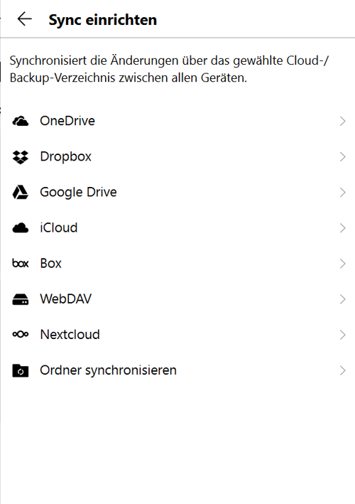 Sie können Ihre Daten mit Cloud-Diensten synchronisieren