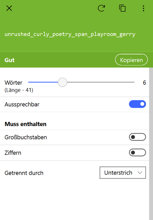 Enpass deckt die meisten Grundfunktionen eines Passwort-Managers ab. Im Passwort-Generator, den Sie in der Desktop-App und von der Browser-Erweiterung aus erreichen können, haben Sie ausreichend Optionen für die Erstellung sicherer Passwörter und können sogar ganze Paswort-Phrasen erstellen.