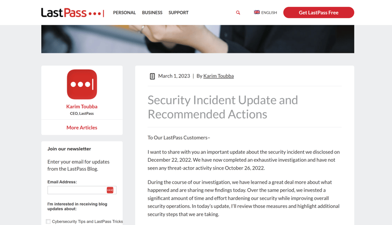 Enttäuschend sind aber nicht nur die Sicherheitsvorfälle selbst, sondern auch die Art und Weise, wie LastPass damit umgegangen ist: LastPass-CEO Karim Toubba gab in einem Blogbeitrag im März 2023 selbst zu, dass Fehler nicht schnell, klar und ausführlich genug kommuniziert wurden.