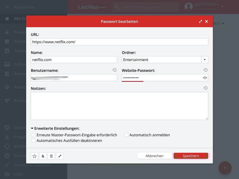 Im LastPass-Vault verwalten Sie alle Ihre Einträge