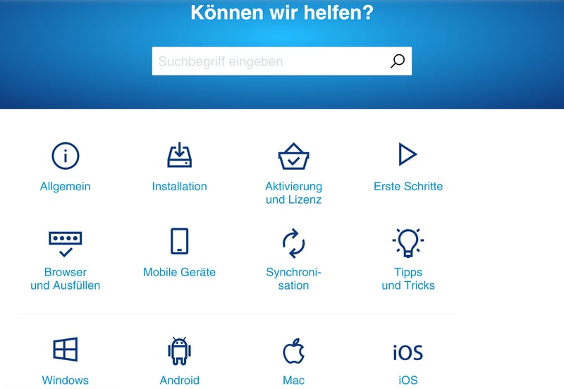 Das Support-Zentrum von Sticky Password ist komplett in deutscher Sprache verfügbar