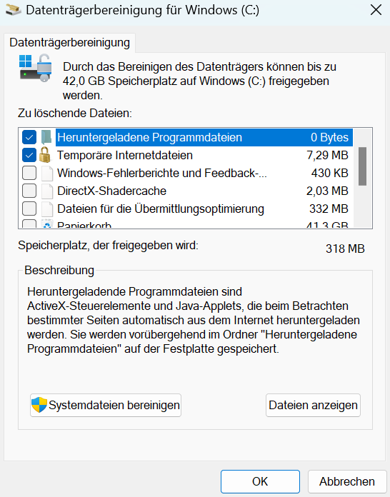 Mit der Windows-Datenträgerbereinigung ist sogar schon ein effektives Tool im Betriebssystem integriert, das Ihnen hilft, unnötige Dateien und temporäre Daten zu entfernen.