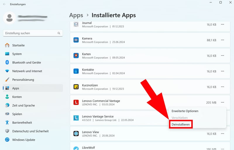 Entfernen Sie vorinstallierte Software (Bloatware)