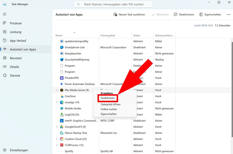 Deaktivieren Sie Programme, die Sie nicht schon beim Start öffnen möchten.