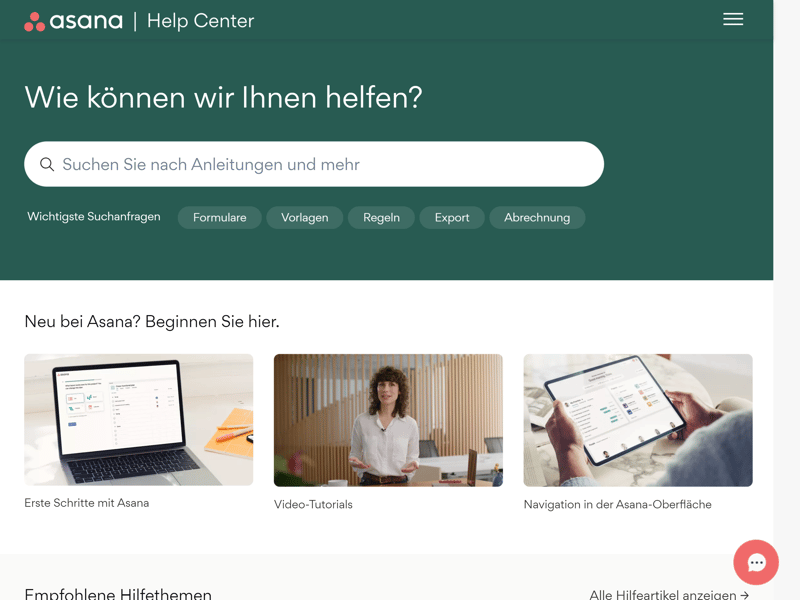 Asana hat ein gut bestücktes Hilfezentrum mit zahlreichen Tutorials, Video-Anleitungen und Fallbeispielen.