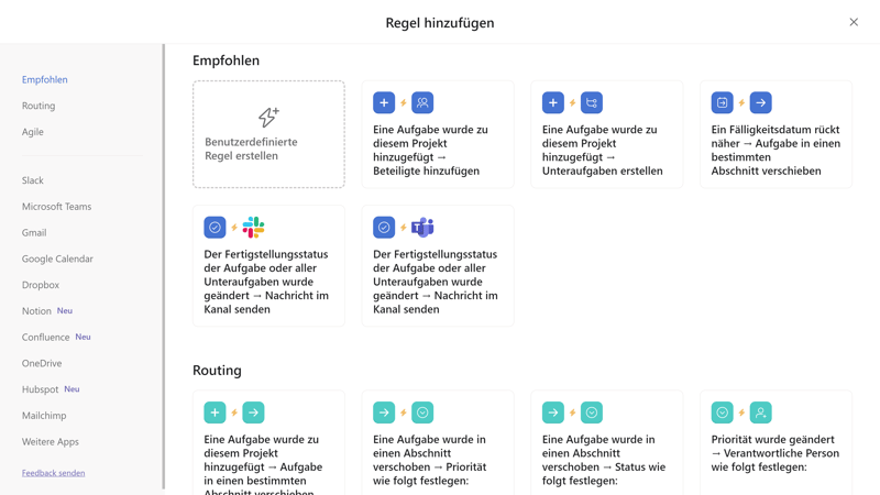 Asana hat auch abseits standardmäßiger Aufgabenmanagement-Optionen einiges zu bieten. Besonders gut gefällt uns, wie Automatisierungen geregelt sind, die sich durch die Kombination aus Workflows und Regeln vielseitig anpassen lassen. Auch die Reporting-Funktionen, die durch benutzerdefinierte Dashboards und Diagramme mit viel Personalisierung punkten, überzeugen.