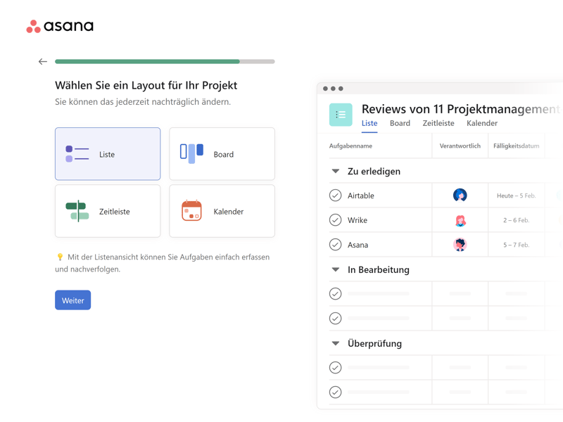 Hier finden Sie die Ansichten von Asana im Vergleich: