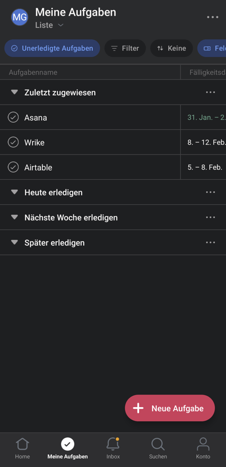 Die App ist am besten dafür geeignet, anstehende Aufgaben zu überprüfen oder kurzfristig Aufgaben hinzuzufügen oder neu zuzuweisen. Weil sie nicht den gesamten Funktionsumfang der Plattform widerspiegelt, bleiben wir für die übergeordnete Projektplanung trotzdem lieber bei der Web-App.