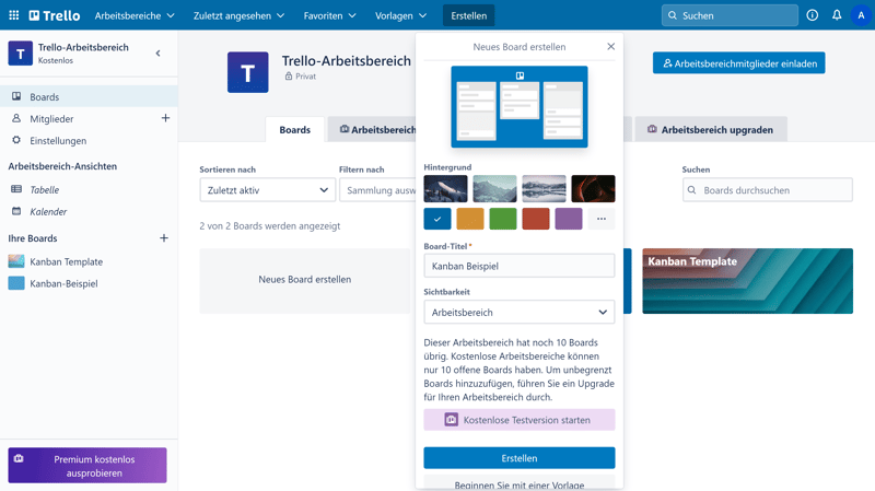 Bei Trello klicken Sie dafür einfach auf Neues Board erstellen.