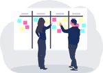 Dazu werden als erstes der bestehende Prozess und die darin auftretenden Probleme auf einem Kanban-Board visualisiert. Dieses besteht meist aus einem einfachen Whiteboard, auf dem Haftnotizen oder Karteikarten angebracht werden. Jede dieser Karten steht dabei für eine Aufgabe.
