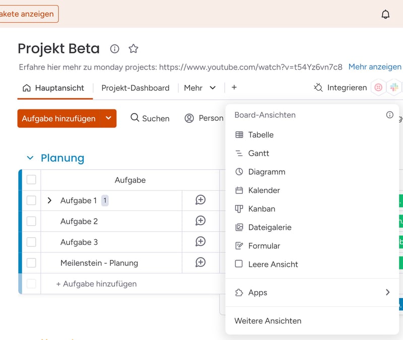 Bei monday.com gibt es grundsätzlich zwei Arten von Ansichten: